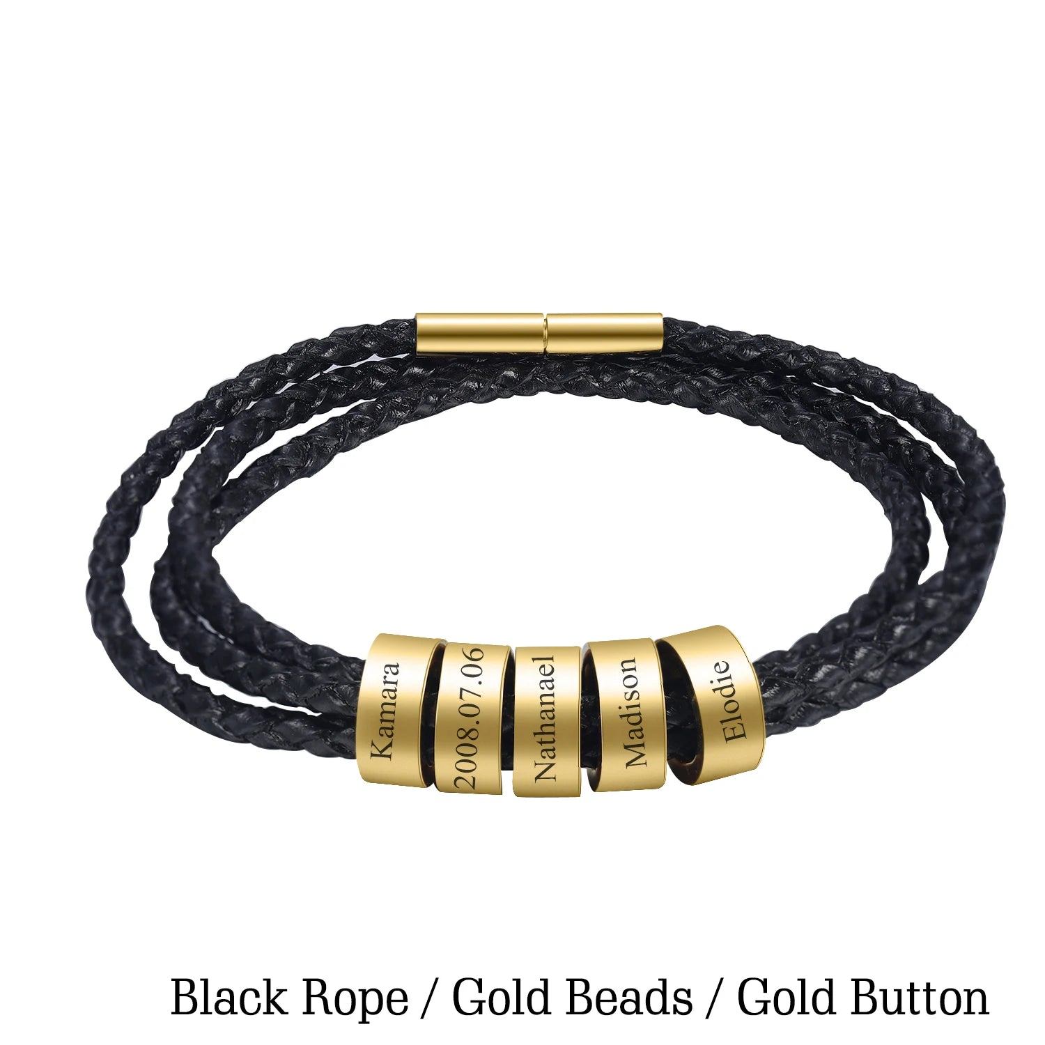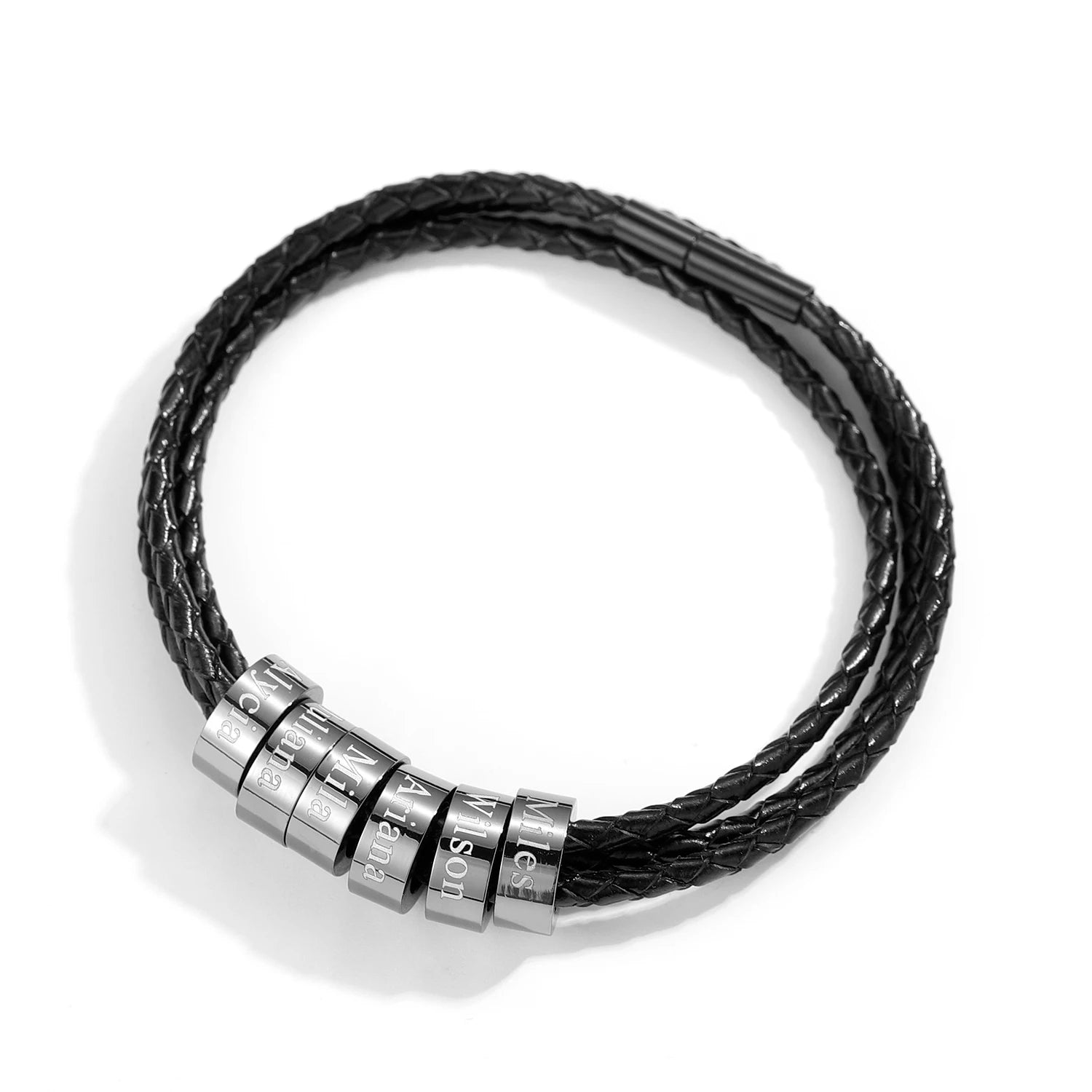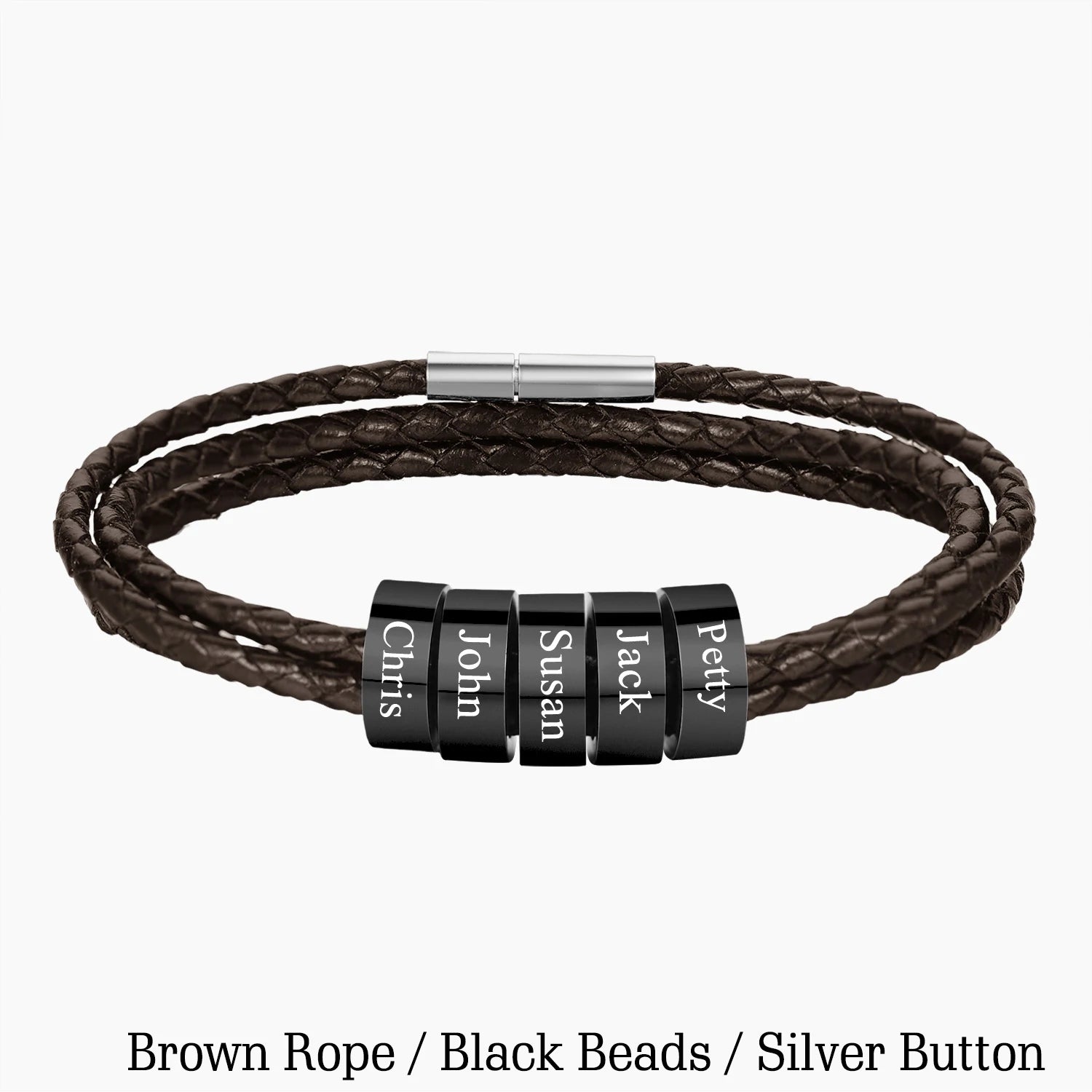The Personalized Family Names Men's Bracelet is a stylish and meaningful accessory, featuring custom-engraved beads with the names of loved ones. Crafted with durable materials like leather or stainless steel, it makes a heartfelt gift for fathers, husbands, or grandfathers. This bracelet combines fashion with sentimental value, perfect for everyday wear.